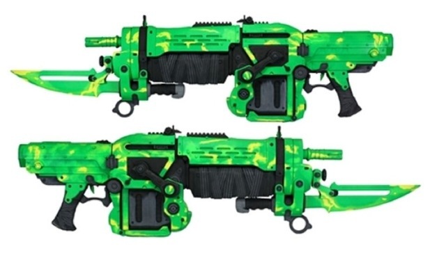 If you’re like me, you may be a huge Gears of War fan. You may have also seen the Retro Lancer props that came out when Gears 3 released in November last year, and like me, drooled and squealed at the opportunity to get one from GameStop. I splurged on all the Gears 3 things available from GameStop, including the original gunmetal retro lancer. When the gold one came out, I wanted it as well, but I didn’t have enough Powerup Points to get it from GameStop and not enough moola to get it from eBay, I am still very envious of those who have the gold one.